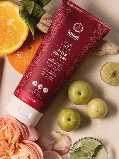 Wie ein Zaubertrank für Kopfhaut und Haare. Schon während des Einschäumen spürst Du die heilende Magie der Ayurvedischen Rezeptur, die Dein Haar reinigt, pflegt und auf natürliche Weise belebt. So entfaltet khadi Amla Volume seine besondere Wirkung: