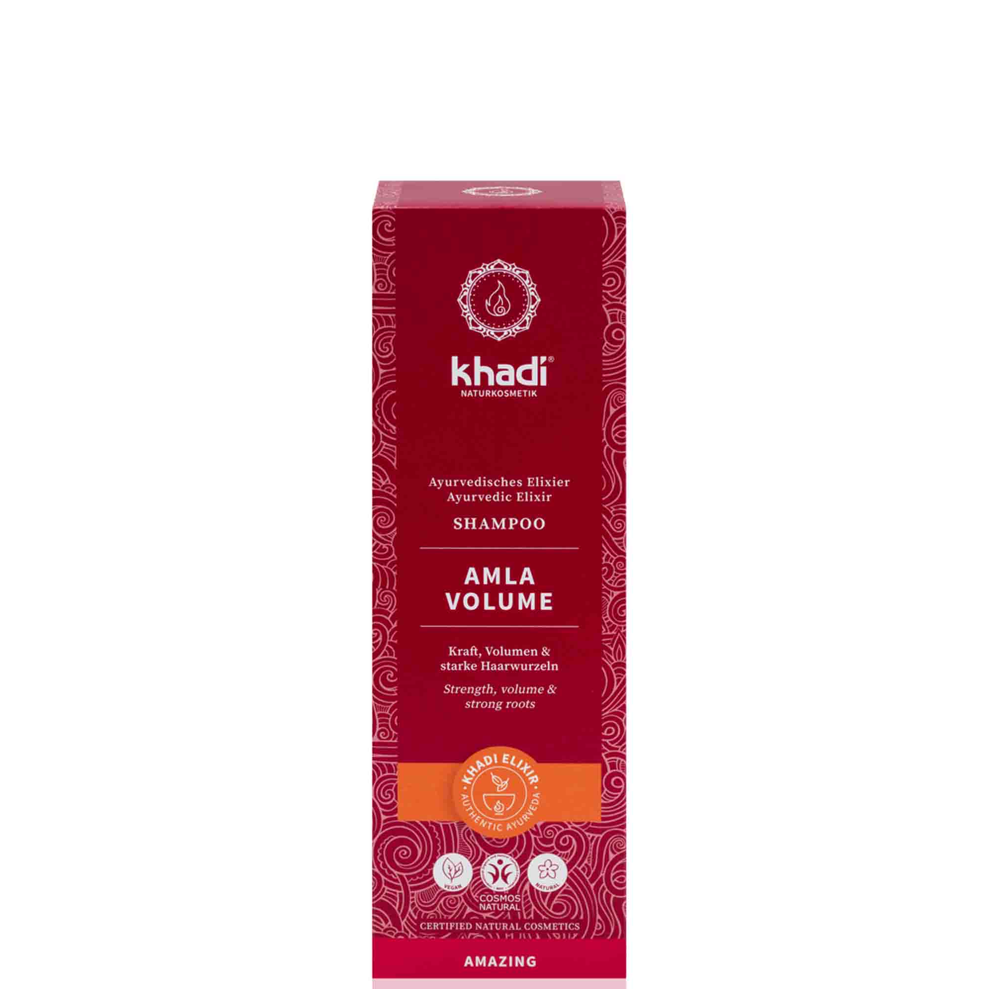 khadi Amla Volume Ayurvedisches Elixier Shampoo verleiht Deinem Haar fühlbar mehr Stärke, Fülle und Kraft. Das Geheimnis der magischen Wirkung beruht auf dem khadi Amla Volume Elixier. In diesem Ayurvedischen Pflanzenextrakt vereint sich die individuelle Wirkkraft handverlesener indischer Heilkräuter zu einem Ganzen und potenziert sich. Das khadi Amla Volume Elixier wird nach altüberlieferten Ayurvedischen Rezepturen in einem traditionellen Verfahren schonend über offenem Feuer hergestellt.