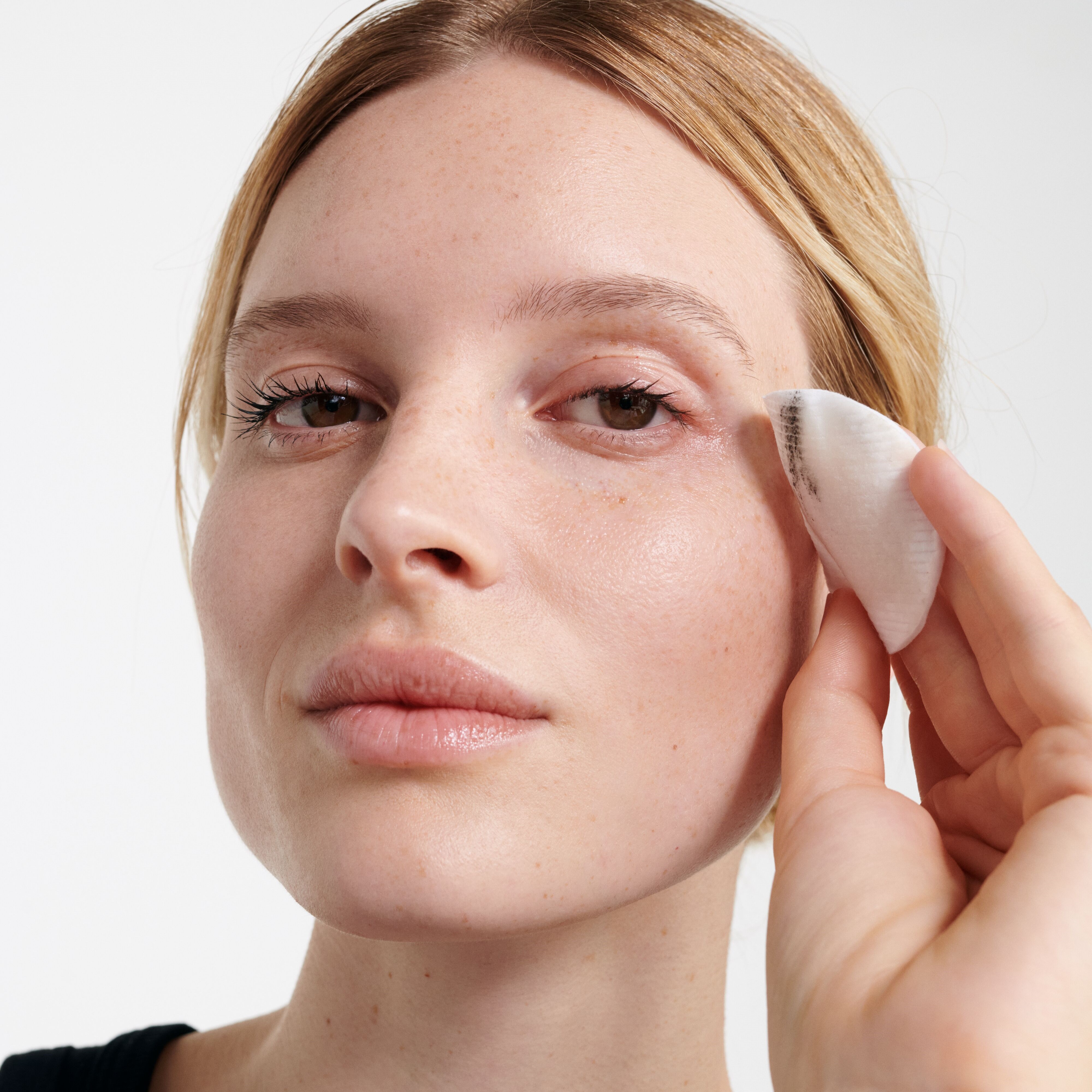 Den Augen Make-up Entferner vor Gebrauch schütteln, damit sich die beiden Phasen verbinden. Ein Wattepad benetzen und sanft von innen nach außen über das Auge streichen, bei Bedarf kurz einwirken lassen.