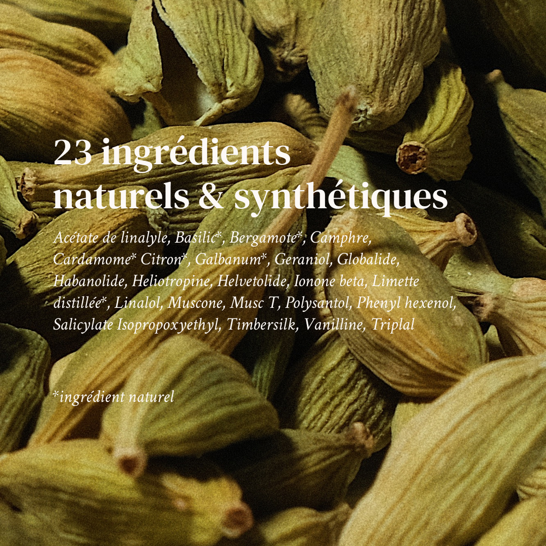 Grün.Basilikum.spritzig.Kardamom.Milchig.mandelig.Vanille.Moschus.süß.