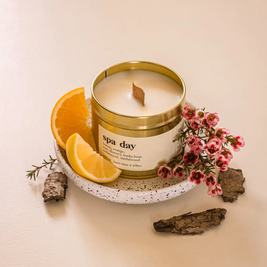 Zünde die Spa day Kerze an und genieße, wie die Aromen und Duftnuancen eines 5-Sterne Spa Resorts dein Zuhause umhüllen!
