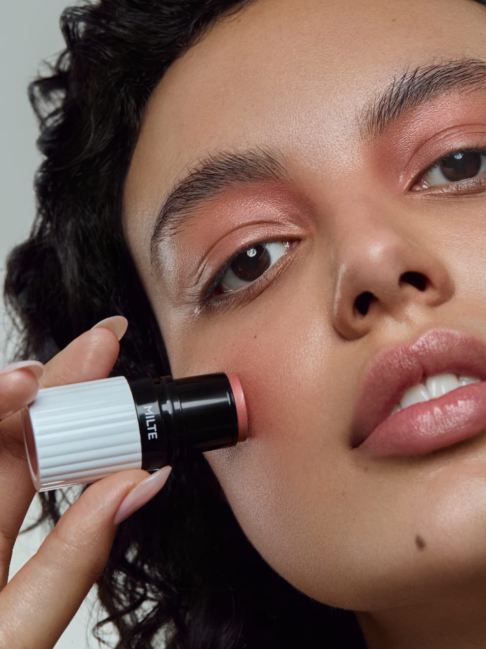 CREME AUF CREME: MILTE Multistick kann ganz einfach auf der Tagescreme oder Foundation aufgetragen werden. Für einen natürlichen Look und leichten Glow entweder mit dem Zeigefinger arbeiten oder mit der UND GRETEL Blush Brush oder Lip Brush. Wenn Dir das Ergebnis zu glänzend ist, kannst Du danach etwas mit dem ILGE Setting Powder fixieren – so mattierst Du den Look etwas und verstärkst die Haftbarkeit auf Augen, Wangen und Lippen.