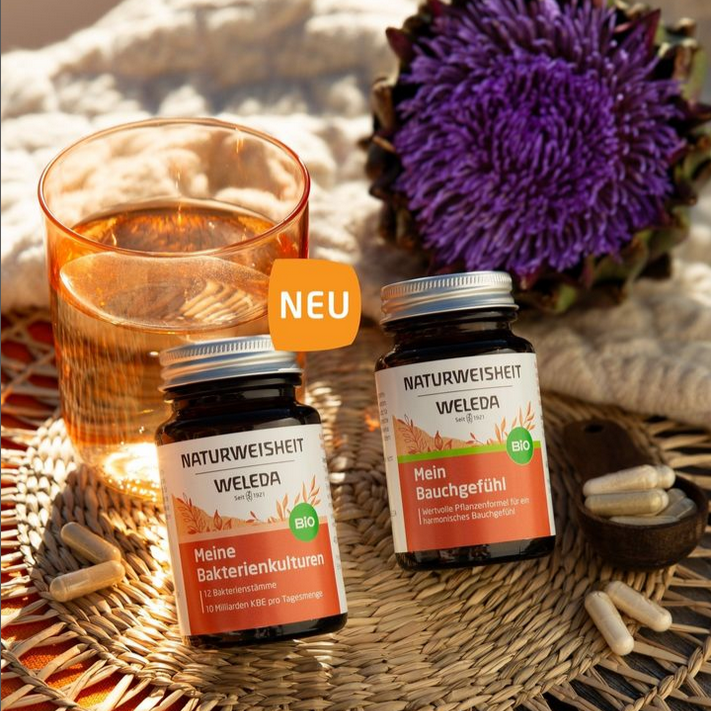 Mein Bauchgefühl kombiniert wertvolle Extrakte aus klassischen Bitterstoffpflanzen wie Artischocke und Gelbem Enzian und enthält zudem den phenolischen Bitterstoff Oleuropein aus Olivenblättern. Sekundäre Pflanzenstoffe aus Mariendistel- und Süßfenchelfrüchten sowie Scharfstoffe aus Ingwerwurzel stimmen die Rezeptur für ein harmonisches Bauchgefühl ab.