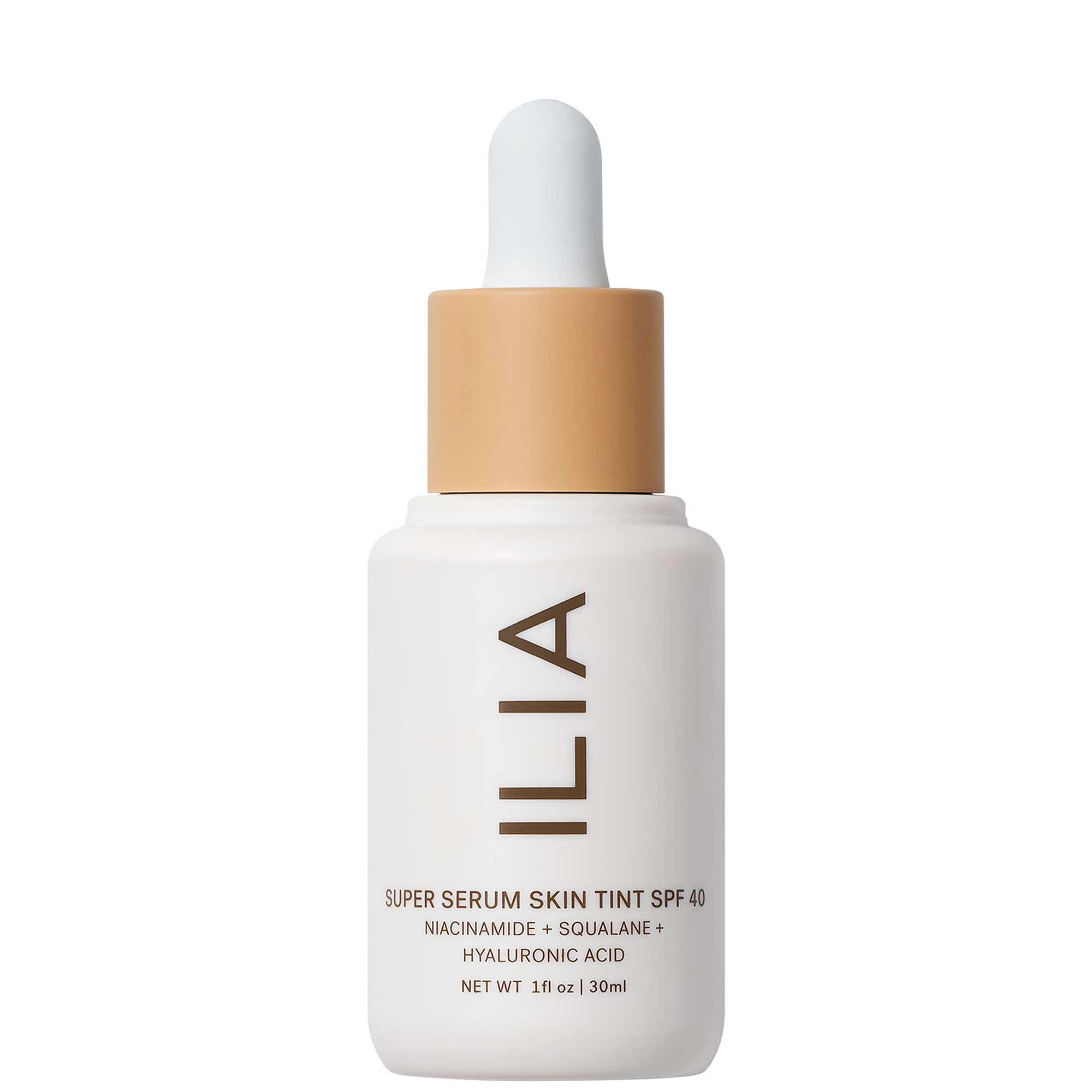Der stolze Lichtschutzfaktor 30 mit nicht-nano Zinkoxid (schützt die Haut sicher vor UVA, UVB, UVC, Blaulicht und Infrarot) deckt die Haut in 18 neuen Farbtönen ab. Der Super Serum Skin Tint von ILIA, eine Mischung aus Hyaluronsäure, Squalan auf pflanzlicher Basis und Niacinamid, gleicht den Hautton aus und minimiert feine Linien und Unebenheiten. Außerdem trocknet das Serum zu einem natürlichen dewy Finish aus.