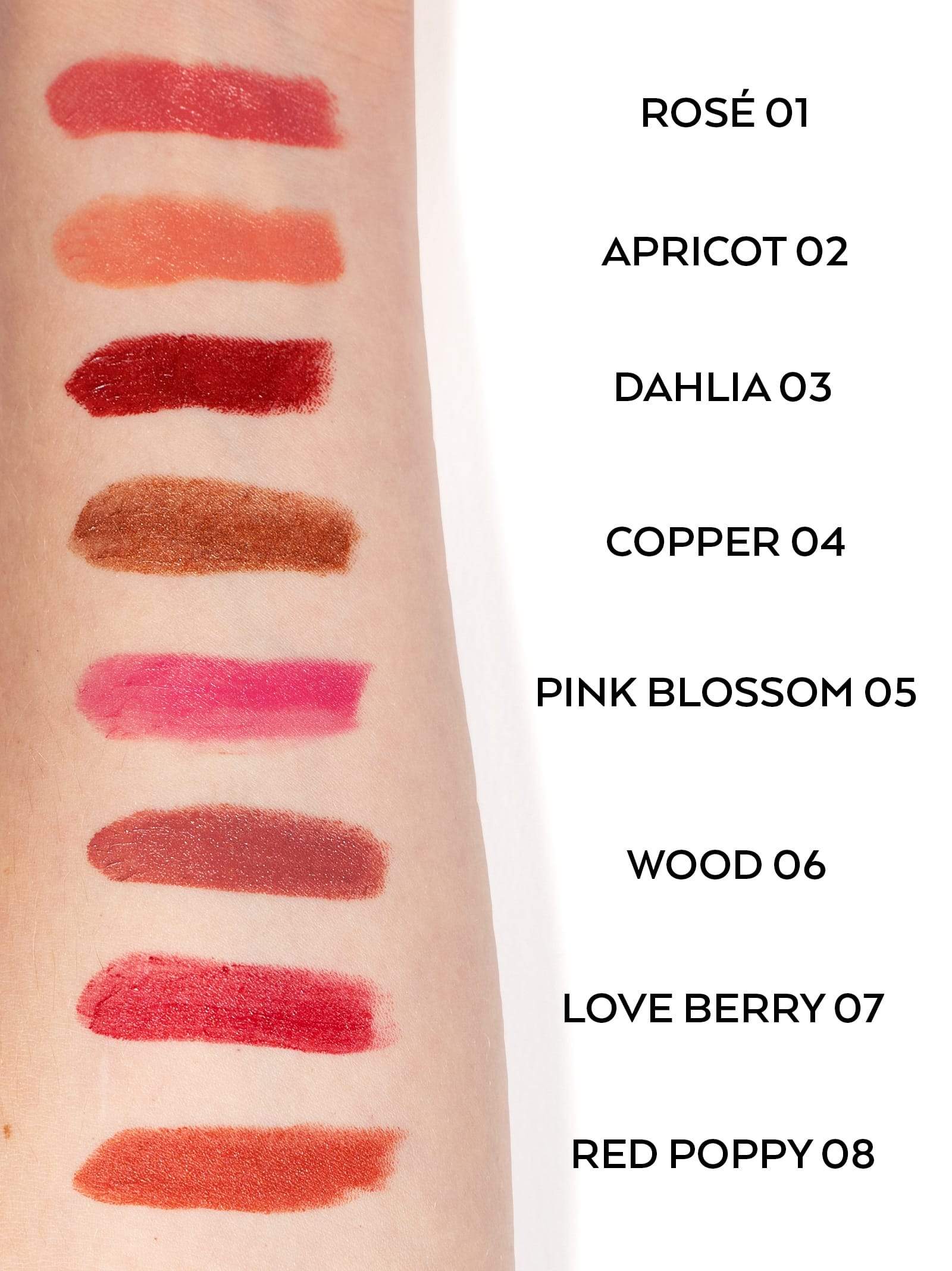 08 RED POPPY ist ein sehr kräftiger, hochpigmentierter Rotton, der von Klatschmohn inspiriert ist. Das Ziegelrot mit leichten orangefarbenen Anklängen ist ein Klassiker unter den Lippenstift-Farben und schmeichelt jedem Hautton und jeder Augenfarbe. Das kräftige und warme Rot legt einen Fokus auf die Lippen. Der Ton wirkt dabei sehr natürlich.