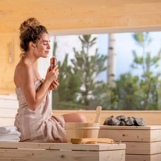 Ausgiebige Saunagänge bieten den idealen Rahmen, um im Alltag durch Wärme und Ruhe eine herrlich tiefe Entspannung zu finden und das Immunsystem zu stärken. Unsere Bio Aroma Sauna-Aufgüsse lassen Dich in wohlige Duftwelten tauchen. Atme die naturreinen Duftkompositionen, während wohlige Wärme Deinen Körper sanft umhüllt.